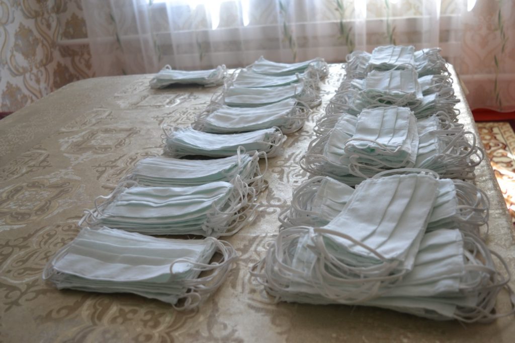 Бүгінге дейін 400-ге жуық бетперде тігіп, алдыңғы бөліктерін көршілерге, тұрғындарға таратып берген. Енді қалған бөліктерін мешіттерге, перзентханаларға және басқада жерлерге таратып беруді көздеп отыр.