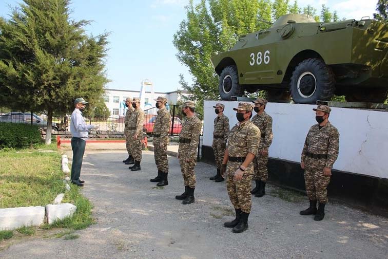 2020 жылдың 20 сәуір күні Ордабасы ауданының ҚІЖБ бастығы подполковник Е.Мұратбек және жұмылдыру бөлімше бастығы-бөлім бастығының орынбасары К.Бимырзаев іріктелген азаматтарға жиынның басты мақсаты-халқымыздың қауіпсіздігі мен денсаулығын қорғау екенін айтып, арнайы әскери киімдерімен, арнайы дезинфекциялауға арналған киімдер және екі сағат сайын ауыстыратын бетперделер мен қолғаптары берілді.