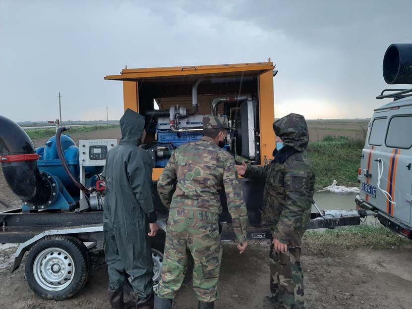 Из Туркестанской области задействованы 55 специалистов, 21 мотопомпа, 6 единиц техники, из Жамбылской области – 50 специалистов, 8 единиц техники, 3 лодки, 15 мотопомп, из Шымкента – 40 специалистов, 8 единицы техники, 10 мотопомп, 2 лодки, из Кызылординской области – 45 специалистов, 6 единиц техники, 4 лодки, 10 мотопомп.