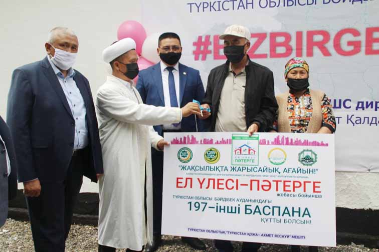 Пятикомнатный дом нуждающейся семье подарил местный предприниматель, председатель ТОО «Ерсұлтан-Агро» Ерболат Мырзабеков. Главный имам Туркестанской области Мусабек Актамберды и местное руководство района поздравили с новосельем большую и дружную семью, вручив памятные подарки.