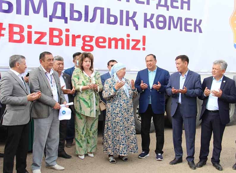 Ал кеше Алматы қаласы әкімдігімен бірлесіп, 8 жүк көлігіне тиелген 98 тонна азық-түлік, құрылыс материалдары, киім-кешек және басқа тұрмыстық заттар жөнелтілген болатын. Көмек керуені жолға шығар алдында ҚХА Төрағасының орынбасары – Хатшылық меңгерушісі Жансейіт Түймебаев ақжол тілеп, қайырымдылық көмекке атсалысқан этнос өкілдеріне алғыс білдірді. Соның ішінде Алматы өзбек этномәдени бірлестігі, Қазақстан ұйғырларының Республикалық этномәдени бірлестігінің филиалы, Алматы қалалық ұйғыр этномәдени бірлестігі, Қазақстан дүнген қоғамының Алматыдағы филиалы, сондай-ақ «Ахыска» түрік этномәдени бірлестігі және басқа да орталықтардың еңбегін айрықша атап өтті.