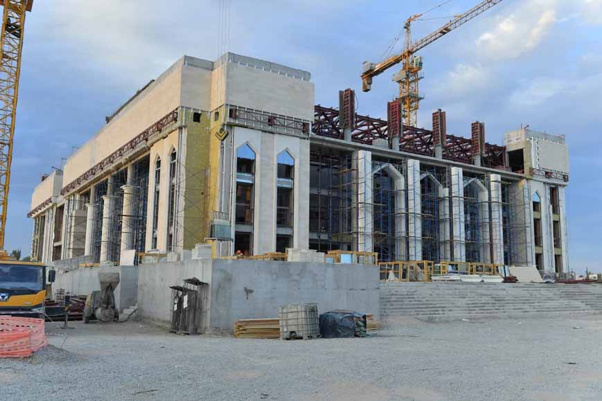 «RixosTurkestan» және Хэмптон қонақ үй кешендерінің қасбеті қаланып, айналасын абаттандыру жұмыстары жүріп жатыр. Екі ауысымды жұмыс ұйымдастырылған.