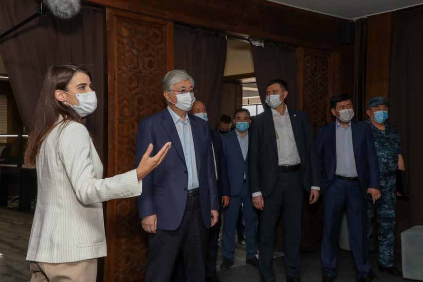 Қасым-Жомарт Тоқаев «Қазақ хандығы» атты залда орналасқан экспозициялармен танысты. Сонымен қатар Президент қолдан жасалған көне кілемдердің көрмесін аралап көрді.