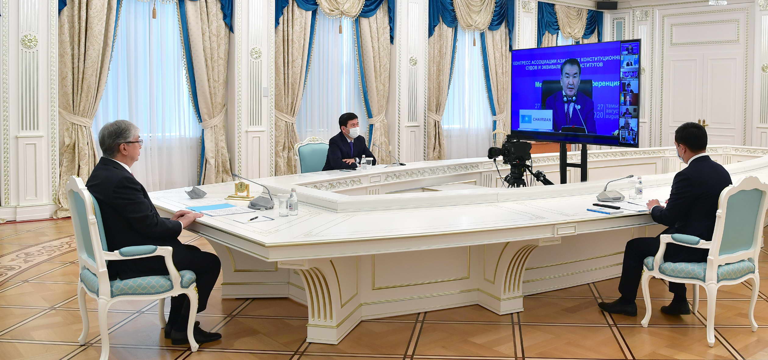 Қасым-Жомарт Тоқаев «XXI ғасырдың Конституциясы – құқық үстемдігі, адам-ның құндылығы және мемлекеттің тиімді-лігі» атты халықаралық ғылыми-практика-лық конференцияның және Азия конститу-циялық соттары және балама институттар қауымдастығы IV Конгресінің пленарлық отырысына онлайн режимде қатысты.