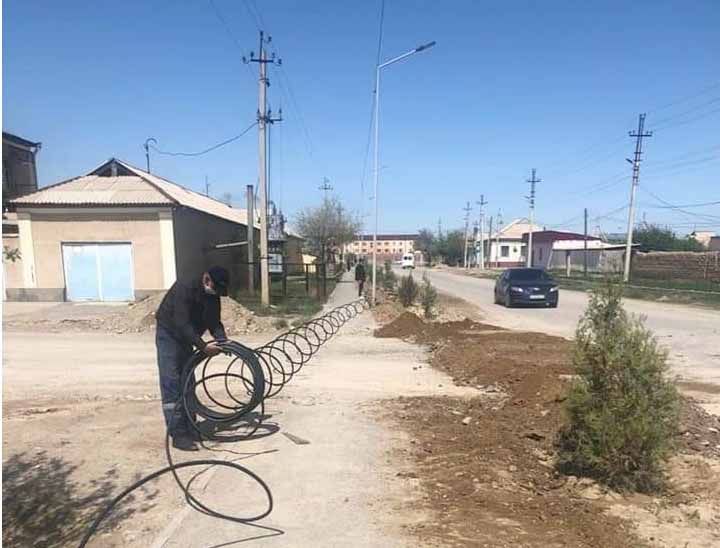 Ағын суды үнемдеу мақсатында «Шардара сервис» МКК тарапынан Жармұқамбетов көшесінің 1,2 шақырымына тамшылатып суғару жүйесі жүргізіліп, тамшылатып суғару жүйесі арқылы егілген 300 түп тұя мен жай жапырақты ағаштар суғарылуда. Көгалдандыру жұмыстары бойынша Шардара ауданынан арнайы мамандар мен 2 автоцестерна көлігі бөлініп, тұрақты түрде тиісті жұмыстар атқарылуда.