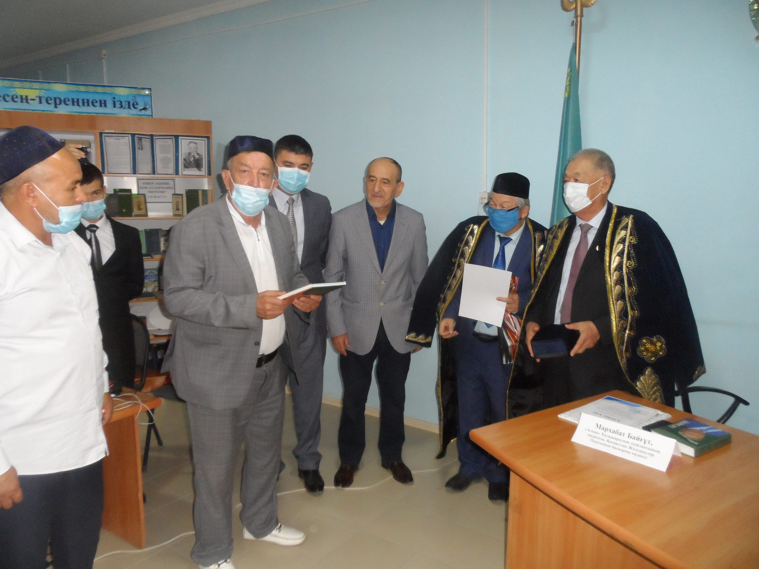 Н. Назарбаев Фармони билан ташкил этилган Туркистон вилояти марказида ўтаётган 110 йиллик юбилейда ҳам модераторликни зиммасига олган ёзувчи, олим Қулбек Ергўбек Туркистондан чиққан таниқли адиблар Одил Ёқубов, Носир Фозиловлар ижодини Миртемир ҳамда Сабит Муқанов билан боғлаб, гапирди. «Жанубий Қозоғистон» газетаси бош муҳаррири, халқаро конференция тадбири ташкилотчиси Алишер Сотволдиев рўзнома саҳифаларида Миртемир мероси ва ижодига оид мақолалар, газетанинг маънавият ва дўстлик мавзуларига доимий ахборий қўллов кўрсатиб келаётганлигини айтди. Ёзувчи Қулбек Ергўбек ҳам «Жанубий Қозоғистон» газетасининг вилоятимиз ижтимоий-сиёсий ҳаётидаги фаол иштирокини ифтихор ила эътироф этди. Адиб Мархабат Байғутнинг 75 йиллиги муносабати билан бош муҳаррир Алишер Сотволдиев, ёзувчи Абдураҳим Пратов, тадбиркор Дониш Маннотов, вилоят ўзбек этномаданият бирлашмаси раиси ўринбосари, «Улес» хайрия жамоат жамғармаси раиси Райимжон Қўчқоровлар қутлаб, тўн кийдириб, «Фахрий ёрлиқ»ларини тақдим этишди.