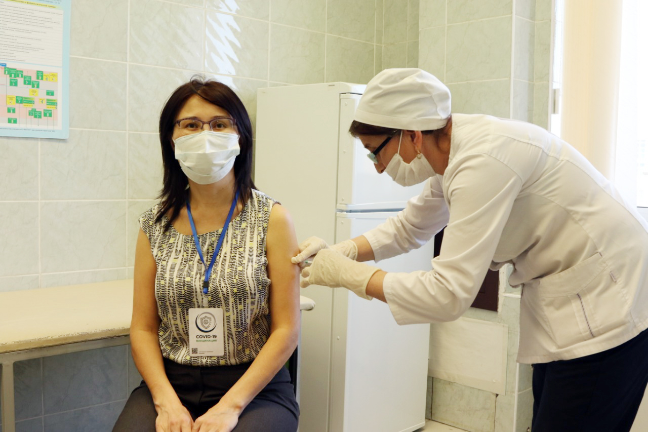 Қ.А.Ясауи атындағы Халықаралық қазақ-түрік университетінің ректоры Жанар Амангелдіқызы оқу орынның клиника-диагностикалық орталығында «Спутник V» вакцинасын алғашқылардың бірі болып қабылдады.