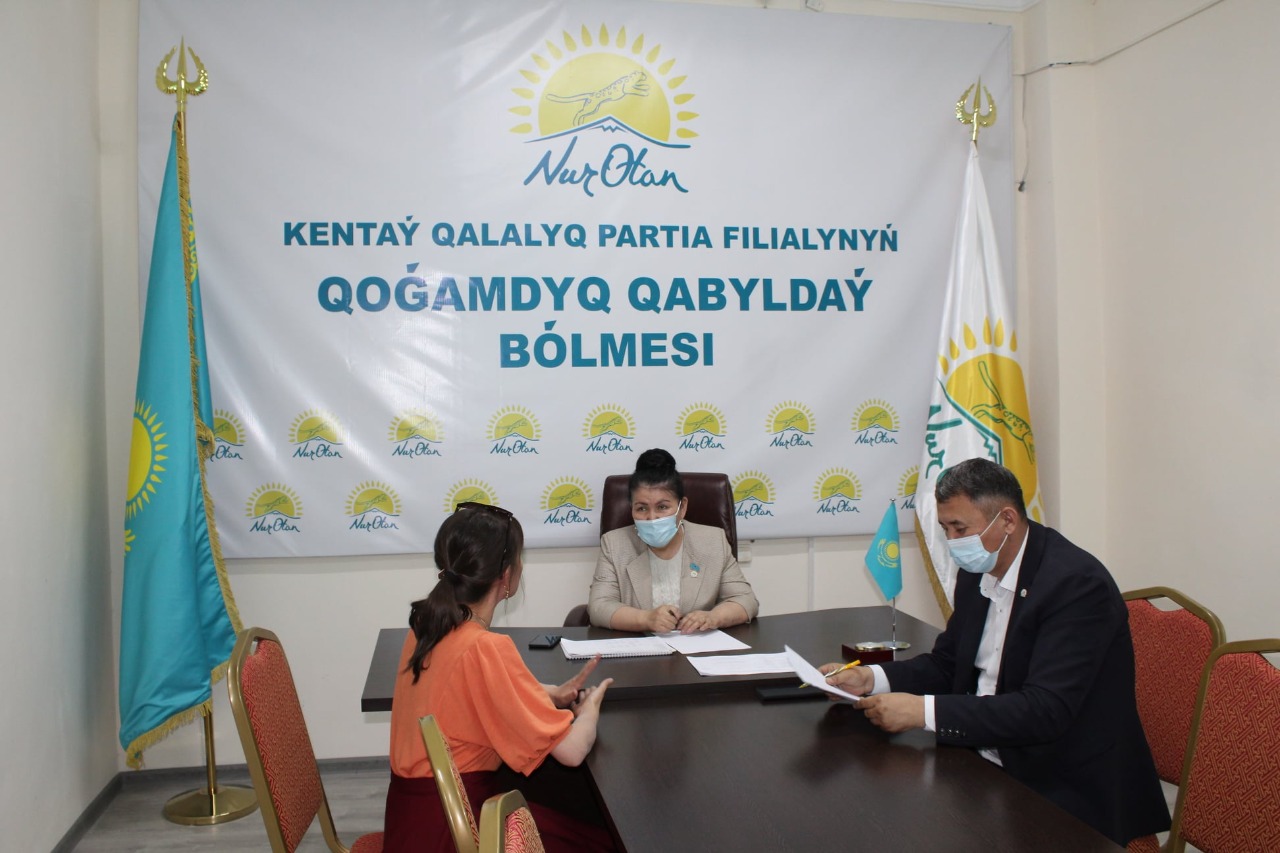 «Nur Otan» партиясы Кентау қалалық филиалы қоғамдық қабылдауында «Nur Оtan» партиясы Түркістан облыстық филиалы төрағасының орынбасары, облыстық мәслихат депутаты Қалыйма Жантөреева жеке қоғамдық қабылдау өткізді. Қабылдауға Кентау қаласының тұрғыны А. Оразымбетова 1993 жылғы ұлының денсаулығына байланысты туабітті өздігінен жүріп-түра алмайтындығын, қоларбаға зәру екендігін айтып келген болатын.