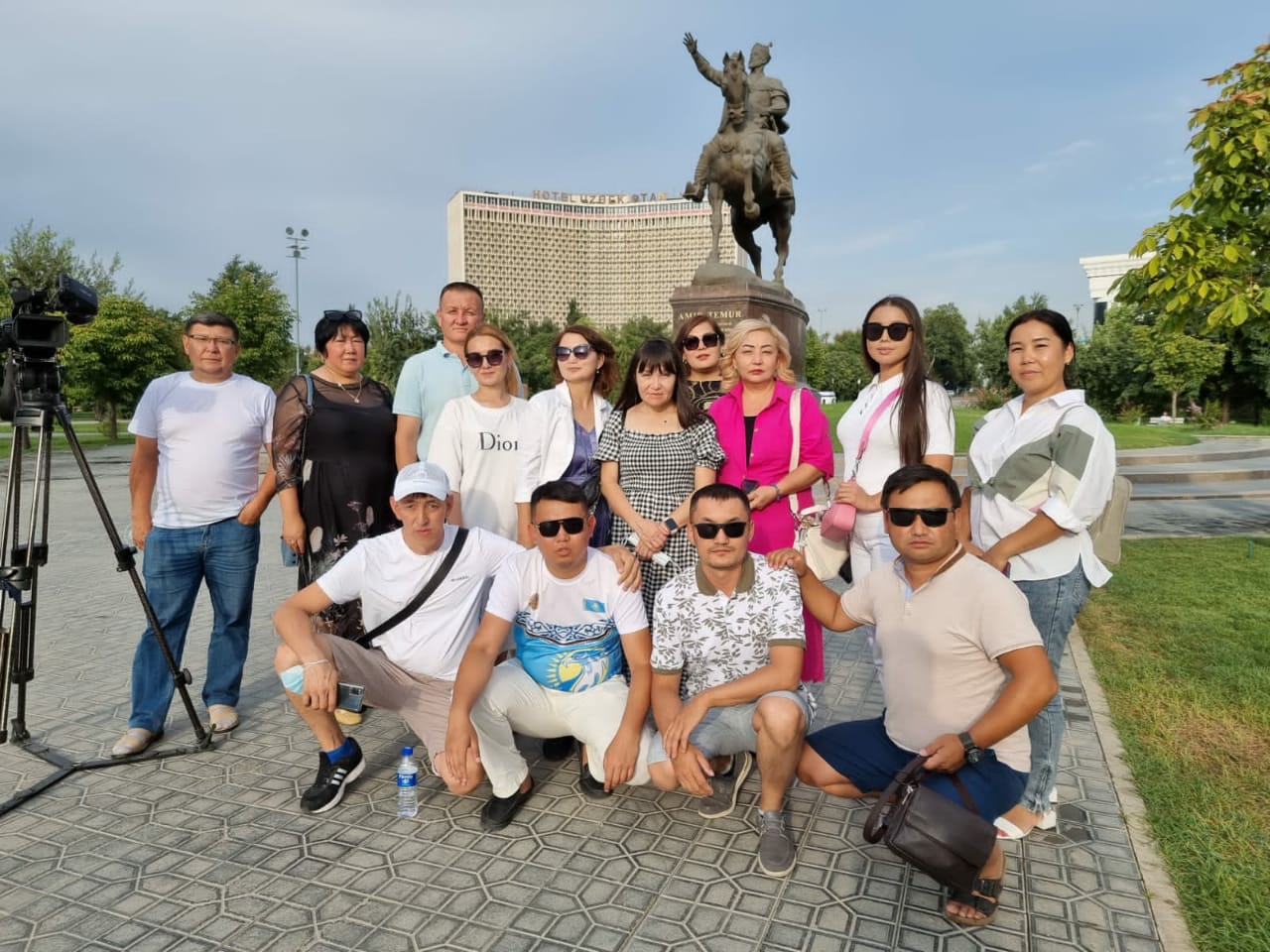 Төле би мен Шейхантаур әулиенің сүйегі жатқан тарихи орынның аңыз-әңгімелері мен қызықты деректері жайлы сұхбаттасқан журналистер өзбек елі астанасындағы сапарын өзге де айтулы орындарға арнады. Ташкенттегі ең көрнекті орындардың бірі – салт атты Әмір Темірдің ескерткіші тұрған үлкен бақ. Неше түрлі ағаш, гүлдер, субұрқақтармен көмкерілген бақтың әсемдігін сөзбен айтып жеткізу емес. Ортағасырлық алып империяның қолбасшысы және негізін қалаушы Әмір Темір атындағы алаңның тарихы ХІХ ғасырдан басталады. 1882 жылы генерал М.Черняевтің бұйрығымен құрылған шағын алаң 2009 жылы қайта жаңартудан өтіп, жаңа, әрі ерекше келбетке ие болған.