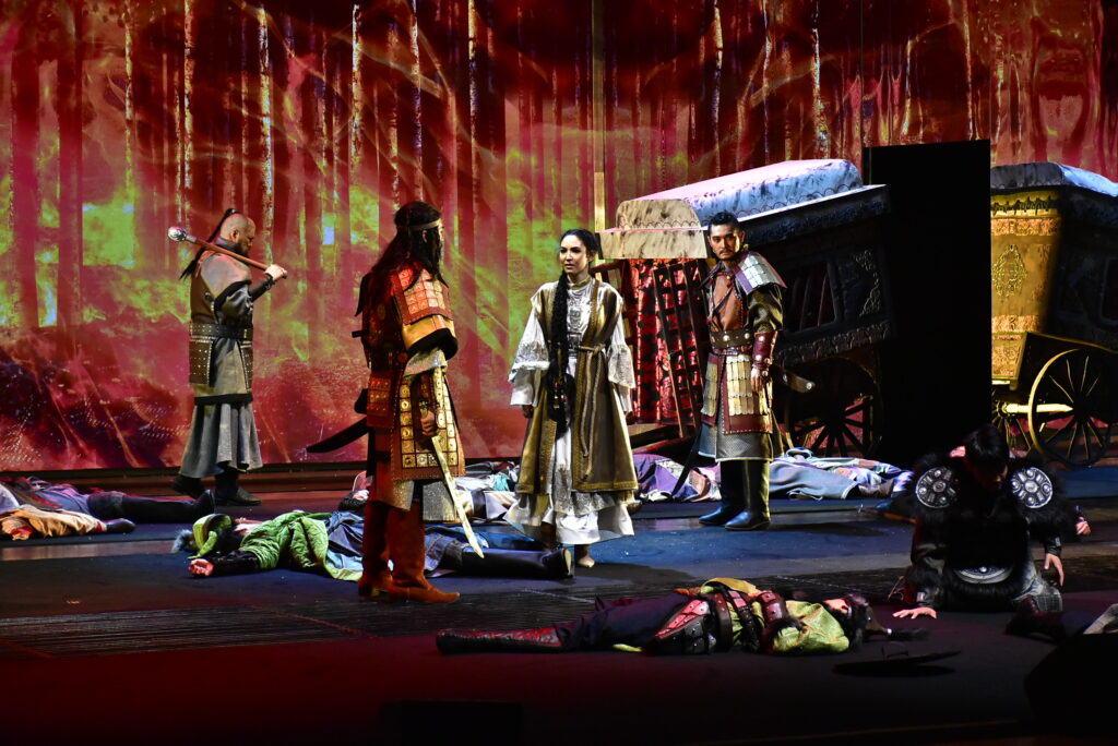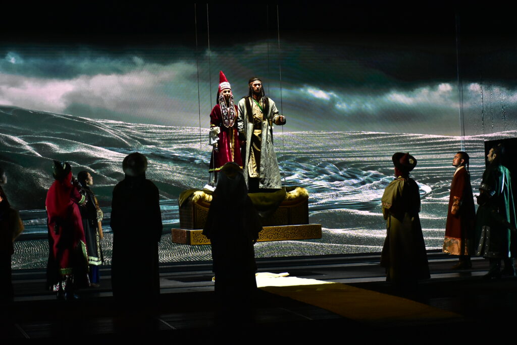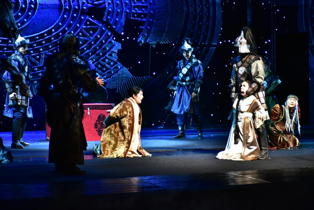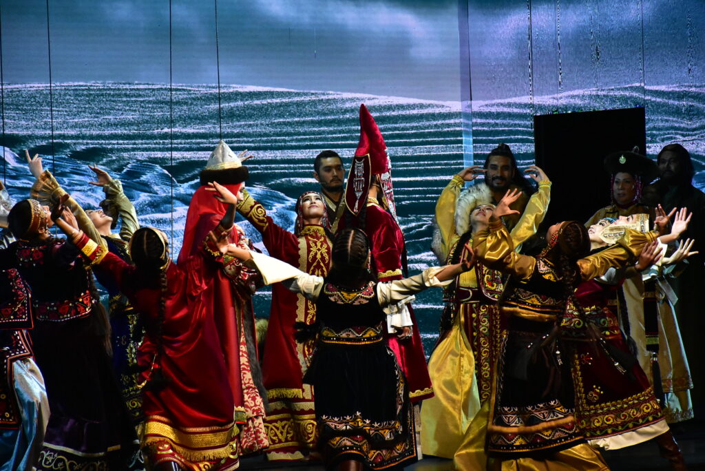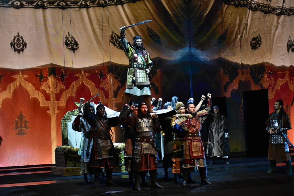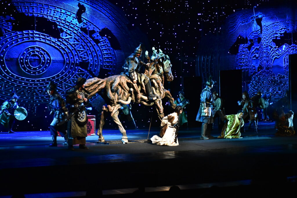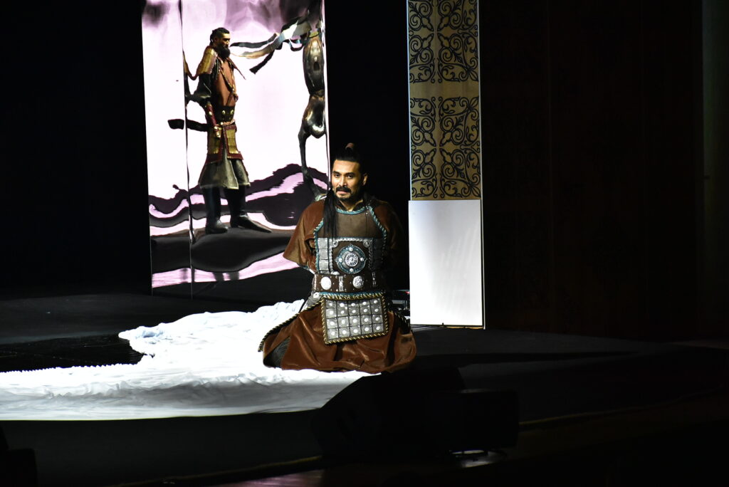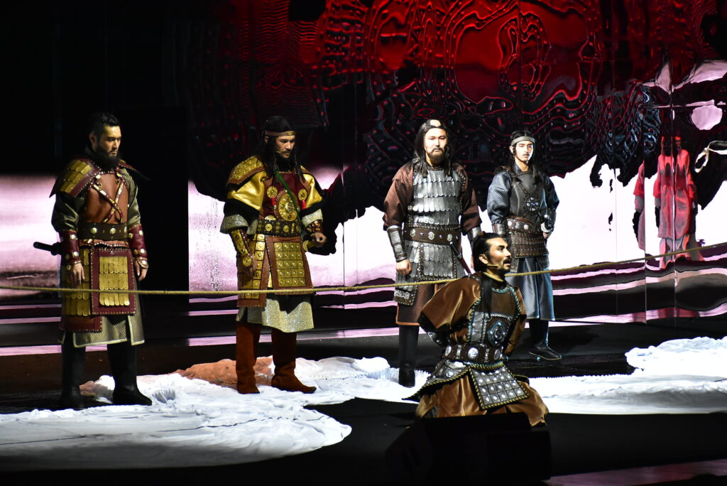 Бөртеге арналған шығарма қазақ сахнасында тұңғыш рет қойылып отыр. Қойылым 10-11 жастағы Темүжін мен Бөртенің алғаш танысуынан басталып, Шыңғыс қағанның алып империяны басқарып тұрған кезеңдерін қамтиды. Шыңғыс хан әскерінің жеңісті жорығы Қытайдан басталып, Украинада болған шайқасқа дейін жетеді. Темүжін алауыздық жайлаған тайпаларды біртұтас мемлекетке біріктіріп, Шыңғыс қаған атанады.