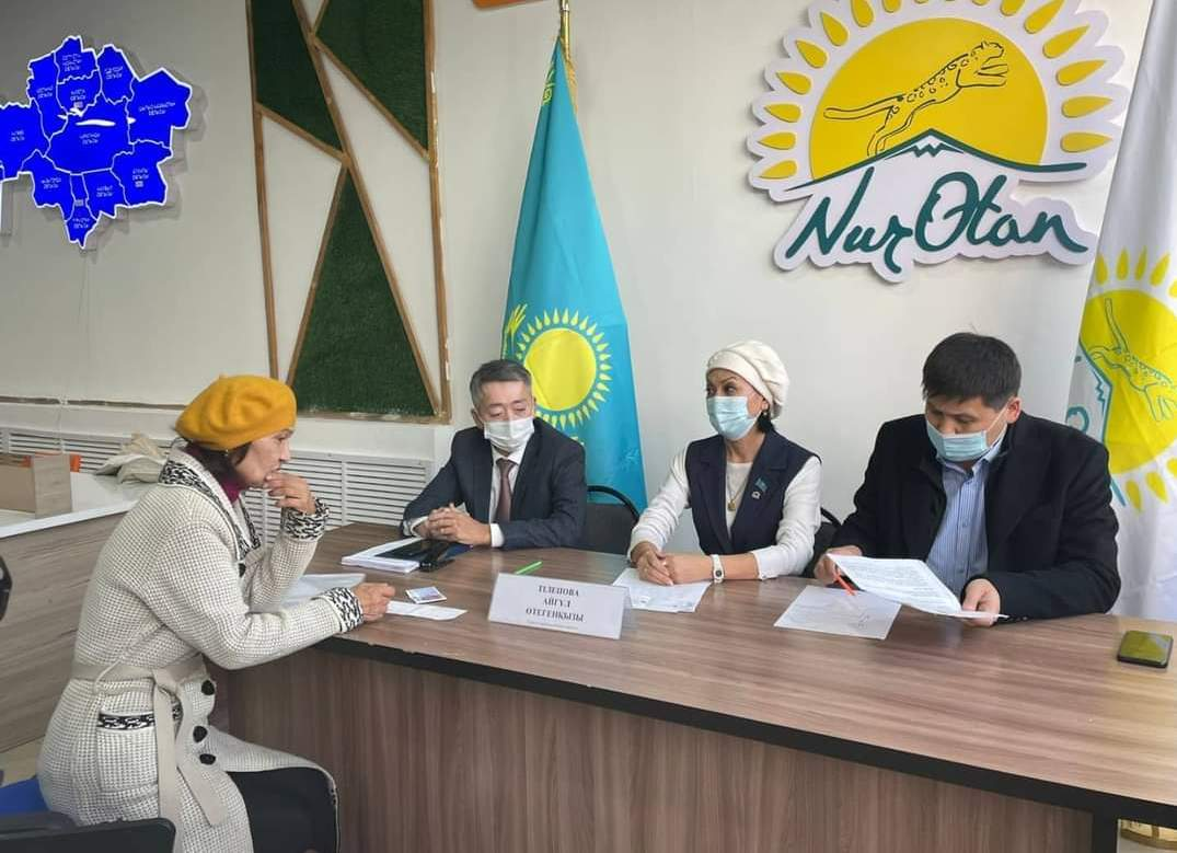 Түркістан қалалық «Nur Otan» партиясының қабылдау бөлмесінде қалалық мәслихат депутаты Айгүл Тілепова, Түркістан облысы Әділет департаментінің Құқықтық түсіндіру және халыққа заңгерлік қызмет көрсету бөлімінің басшысы Нұрлан Ербекешов, Түркістан облысы Әділет департаментінің атқарушылық өндірісті қамтамасыз ету бөлімінің басшысы Мақсат Амирханов тұрғындар мәселесіне назар аударды.