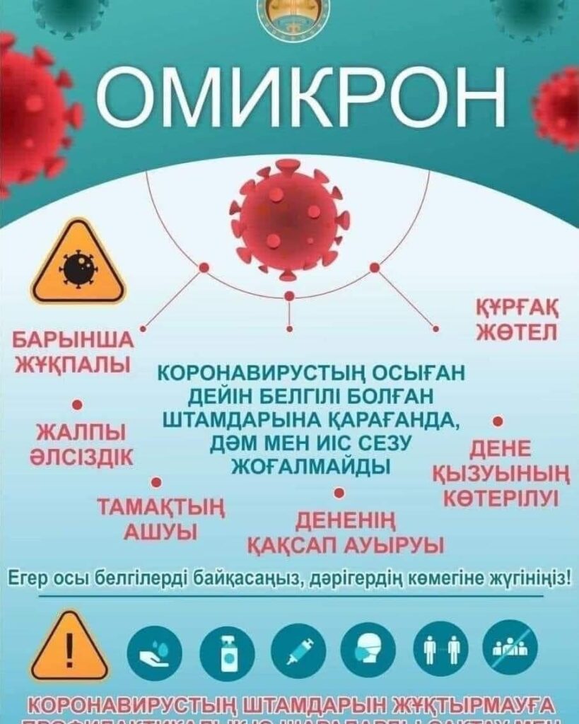 «Омикрон» – патогенді, жұқпалылығы «Дельта» нұсқасынан жоғары және ағзадағы антиденелерді айналып өтуге қабілетті, көптеген жаңа мутацияларымен ерекшеленеді.