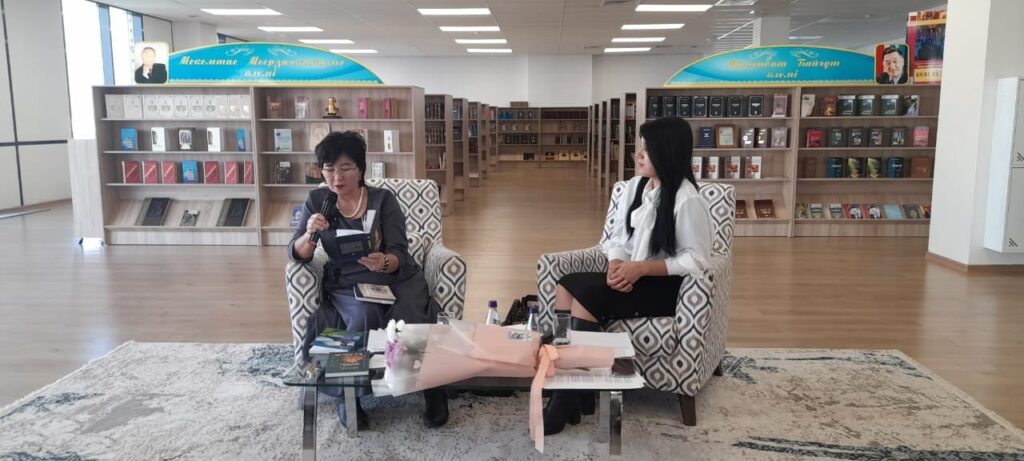 Сұхбат соңында ақын Алтыншаш Жұманқызы кітапханаға өз кітаптарын сыйға тартты.