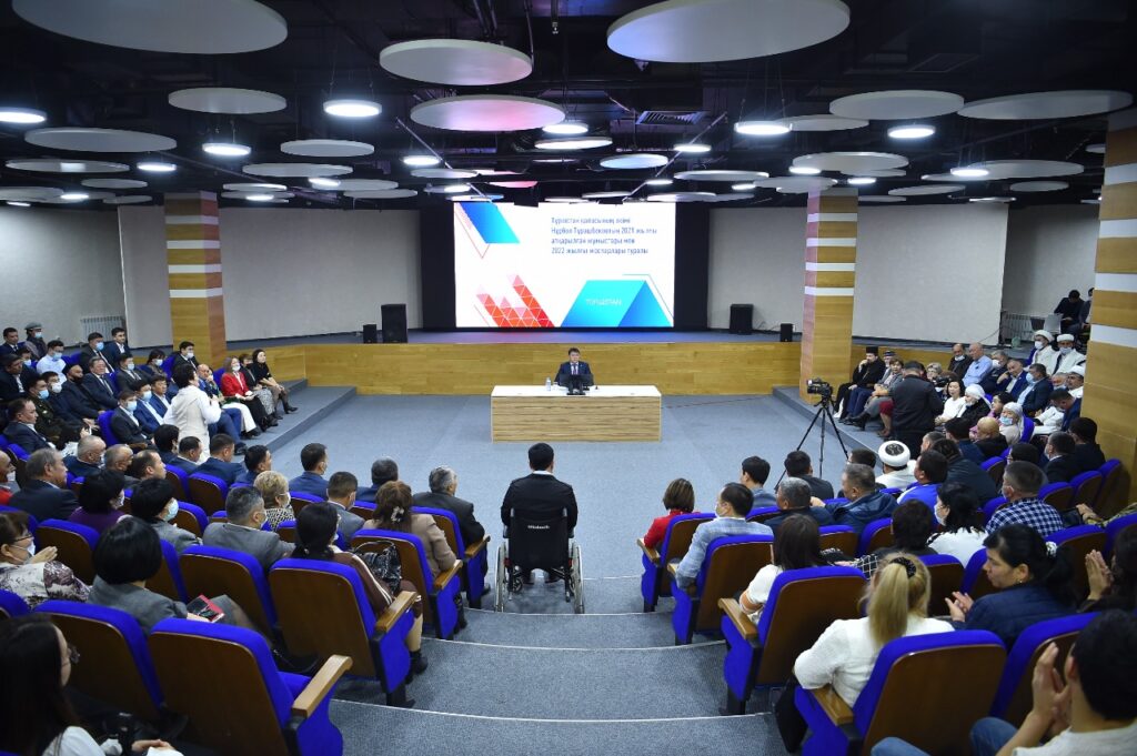 Жиында осы секілді мәселелер қатарынан сөз болды. Былайша айтқанда, атқарылған жұмыстар, алда атқарылмақ жобалар мейлінше кеңінен айтылды. Солардың ішінде «TURKISTAN-109» бірыңғай байланыс орталығының жұмысы да айтылды. Мәселен 2021 жылы 109 бірыңғай байланыс орталығына түскен өтініштер саны 104 446 болса, мерзімінде орындалған өтініштер саны 104 438 болып табылған. Ал, 2022 жылдан бастап қабылданған өтініштер саны 13 676 болып, бөлімдер тарапынан қаралу барысындағы өтініштер саны 296-ны құраған. Келесі жалпы өңірлік өнім 2021 жылы 268,8 млрд. теңгеге жетіп, оны жан басына шаққанда 1 410,6 теңгені құраған. Жеке-жеке өнеркәсіп саласына 7,5%, (20,0 млрд.теңге), ауылшаруашылық саласына 3,5% (9,5 млрд.теңге), құрылыс жұмыстары 66,4% (178,6 млрд. теңге), тауар айналымы және қызметтерді өткізу көлеміне 22,6 % (60,7 млрд.теңге)болып табылады.