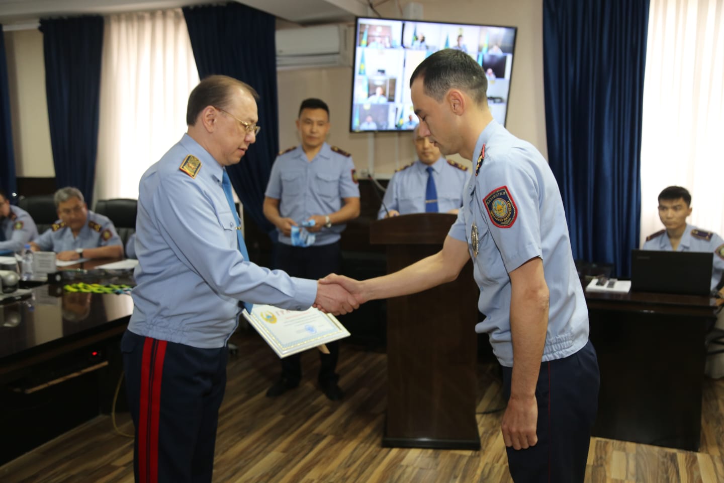 Түркістан облысы Полиция департаментінің мәжіліс залында облыстық полиция департаментінің бастығы полиция генерал-майоры Мұрат Қабденовтың қатысуымен марапаттау рәсімі өтті. Облыстың бас полицейі өздеріне жүктелген міндетті сапалы орындап, қылмыстың ізін суытпай ашуға ықпал еткен тәртіп сақшыларын Құқық қорғау заңына сәйкес арнайы марапаттады.