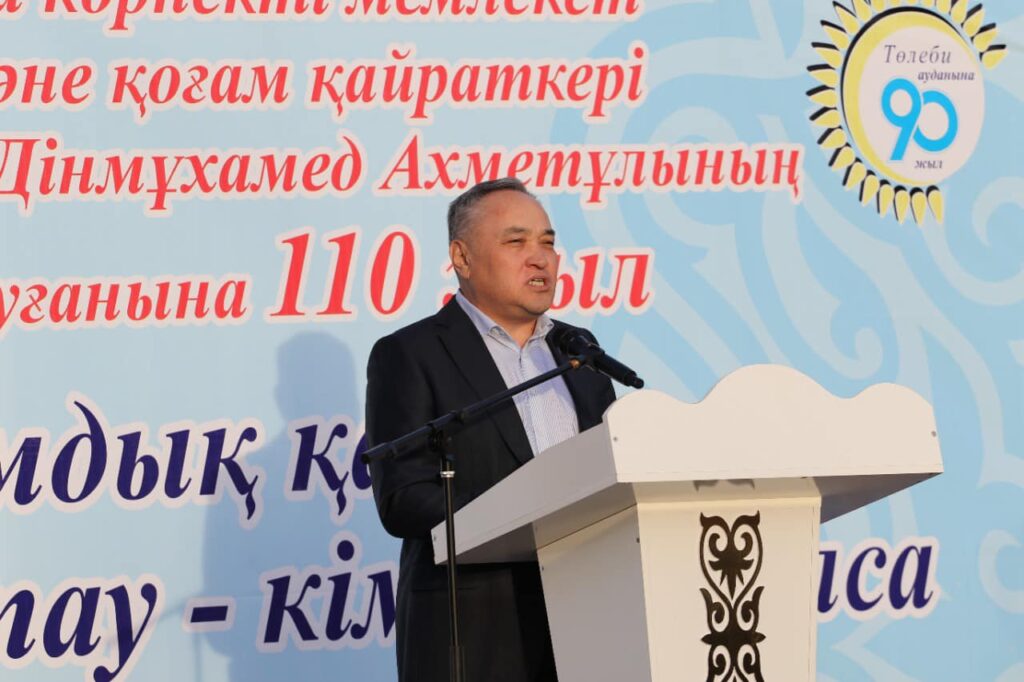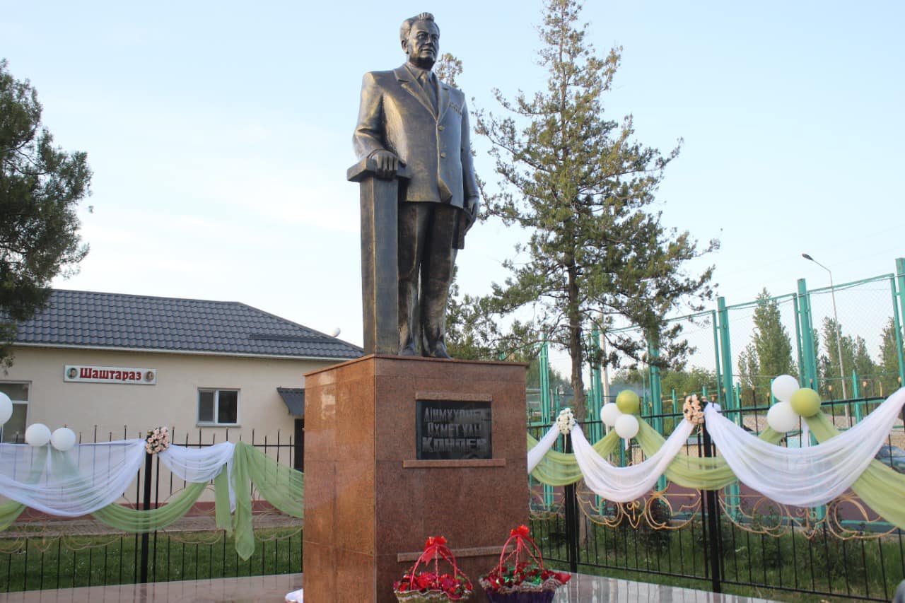 Түркістан облысы Қоғамдық кеңесінің төрағасы Байділдә Жылқышиев, мемлекет қайраткері Асқар Мырзахметов, Оңтүстік Қазақстан облысының Құрметті азаматы Әбілқасым Досболов, аудан әкімі Төлеген Телғараев ескерткішке гүл шоқтарын қойып, тағзым етті. Айта кетейік, «Атамекен» корпорациясы» ЖШС-нің директоры Мұрат Төлтебаевтың демеушілігімен бой көтерген қоладан жасалған ескерткіштің жалпы биіктігі 5 метрді құрайды.
