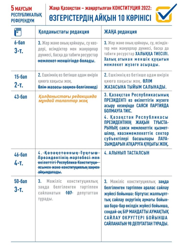 Әлеумет Басты КОНСТИТУЦИЯЛЫҚ ӨЗГЕРІСТЕРДІҢ 10 АЙҚЫН КӨРІНІСІ admin 18.05.2022 No Comments 1 103 көрілім