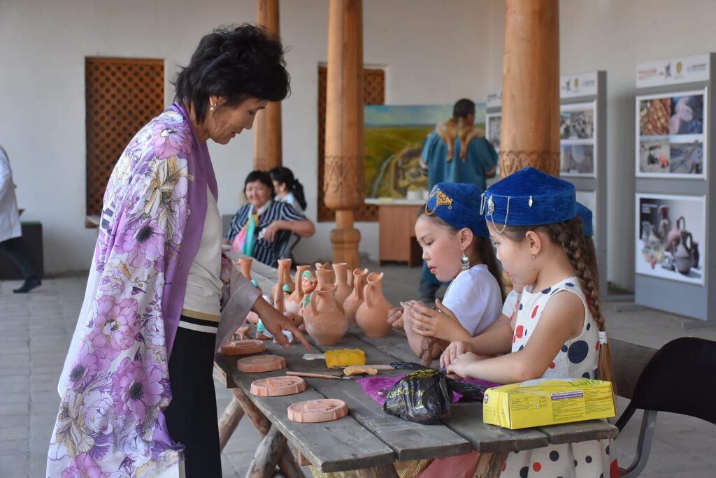 «Жер ана-Ел ана» композициясынан өте берісте шағын үстелге жайғасқан әдеміше қазақ қызы саз балшықтан құмыра жасауды кішкене қыздарға үйретіп, өзі де жасап көрсетіп жатыр. Әсем көрініс. Бұл Ұлбосын Рысбаева Әбілхан Қастеев атындағы көркемөнер мектебін бітірген екен. Биылғы жылы Республикамызда «Ең үздік шебер» атағын алып, сертификатына ие болған екен. Жиырмадан астам шәкірттері бар көрінеді. Осы көріністі тамашалап тұрған әжейді әңгімеге тарттық.