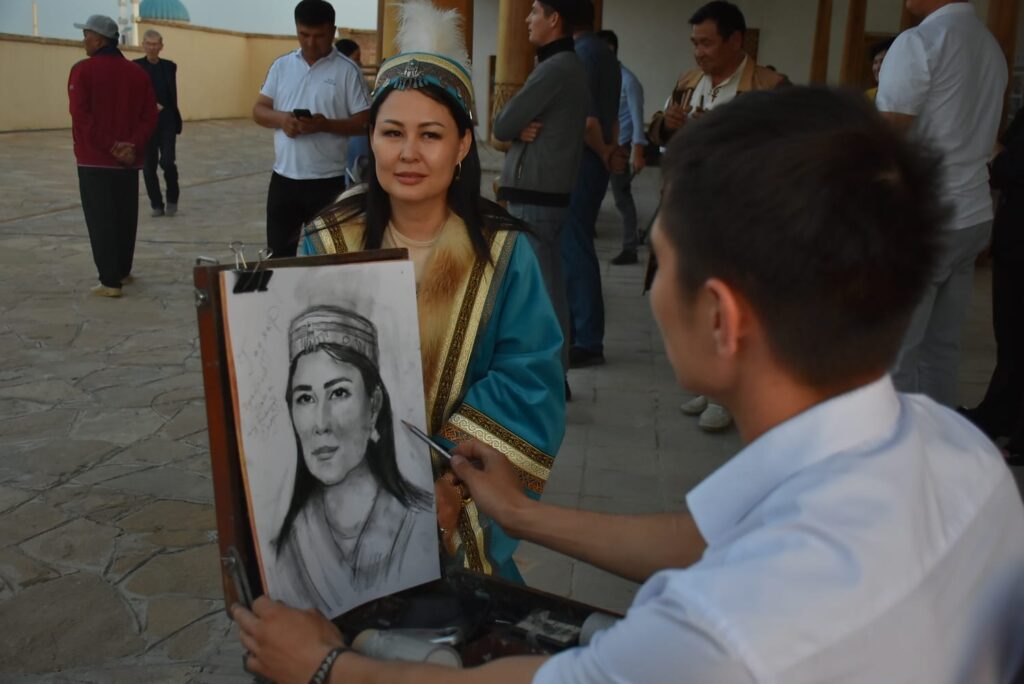 “Мен мына саз балшықтан құмыра жасап отырған қызға ризамын. Себебі, біз мектепте балаларға пластилиннен түрлі ойыншықтар жасатамыз. Ол дұрыс емес. Баланың тырнағының астында қалып қойған пластилин асқазанына кетіп, ішек ауруларына ұшыратады. Одан да өзіміздің Түркістанның жер қойнауының байлығы саз балшықты пайдаланғанымыз жөн. Мен осы музейде көп жыл қызмет еттім. 1978 жылы Мәдениет министрі Өзбекәлі Жәнібеков өзі ашқан «Әзірет Сұлтан» мемлекеттік тарихи- мәдени музей-қорығының штатында үш адам кейін келе 17 адам қызмет еттік. Ол кезде халық сирек келетін. Қазір міне облыс мәртебесін алғалы алыс жақын шетелдерден қонақтар келуде. Осындай елді қызықтыратын, киелі Түркістанның мәртебесін көтеретін шаралар көбейе берсін деп тілеймін”,-дейді музей ардагері Бибажар Зиябекова.