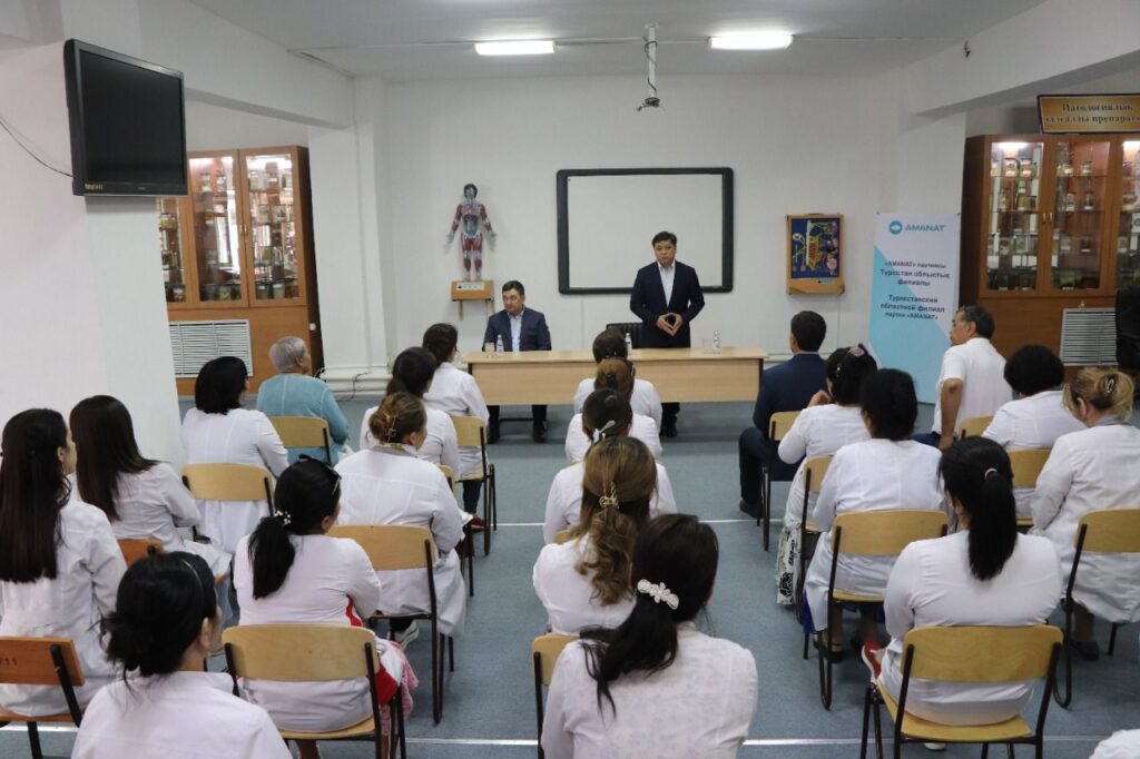 Д.Қыдырәлінің сапары Түркістан қаласында медициналық колледж ұжымымен кездесуден басталды. Онда өзгеріске енетін баптар мен жаңа заңдарға түсіндірмелер берілді. Ұстаздар денсаулық және әлеуметтік, сондай-ақ тіл мәселесін көтерді. Д.Қыдырәлі өзгерістердің басым бөлігі негізгі тармақтарға яғни мемлекеттік басқару, құқықтық және саяси жүйеге қатысты екенін атап өтті. Ал салалық өзгерістер өз кезегінде орындалатын шаралар қатарында деді. Ал Б.Тәжібаев сайлау жүйесіне байланысты жаңалықтармен бөлісті.