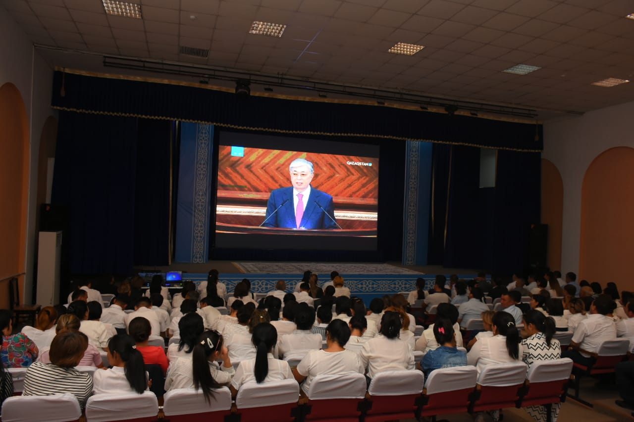 Президентіміз Қасым-Жомарт Тоқаевтың экономикалық өрлеу мен тұрмыс сапасын арттырудағы Қазақстан халқына арнаған тұңғыш Жолдауын түркістандықтар тікелей эфир арқылы тамашалады. Шаһар басшысы Рашид Аюпов, қалалық мәслихат хатшысы Ғаппар Сәрсенбаев бастаған зиялы қауым өкілдері «Сындарлы қоғамдық диалог – Қазақстанның тұрақтылығы мен өркендеуінің негізі» атты тарихи құжатты асқан ыждахаттылықпен тыңдады.