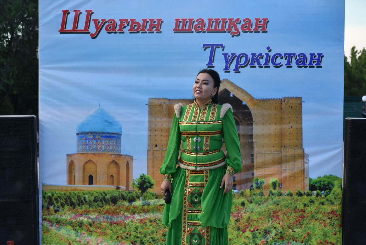 Көрермендерге көтеріңкі көңіл-күй сыйлаған концертте Түркістанға, туған жерге арналған «Мәңгілік ел», «Бабалар рухы», «Қазақтай ел қайда» және «Түркістан» атты әндер шырқалды. Іс-шара барысында алаңға жиналған өнерлі тұрғындар да әндер орындап, би биледі.