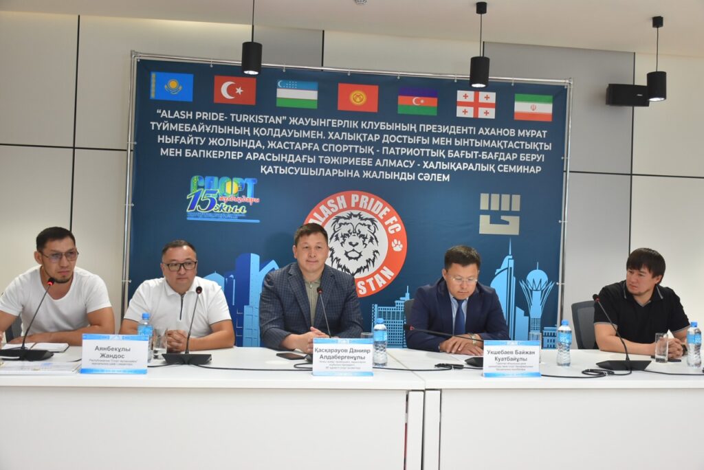 Бүгін «Түркістан арена» спорт аренасының конференция залында «ALASH PRIDE TURKІSTAN» жауынгерлік клубының президенті М.Ахановтың қолдауымен халықаралық семинар өтті. Семинардың басты мақсаты халықтар достығы мен бірлігін нығайту жолында жастарға спорттық-патриоттық бағыт-бағдар беру мен бапкерлер арасындағы тәжірибе алмасуды көздеді.