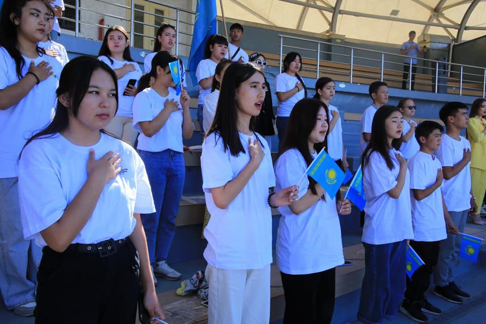 Ашық аспан астында өткен шарада түркістандық жастар республика бойынша күндізгі сағат 10-да Қазақстан Республикасының Мемлекеттік Гимнін өзге аймақтармен бір мезетте бірге орындады.