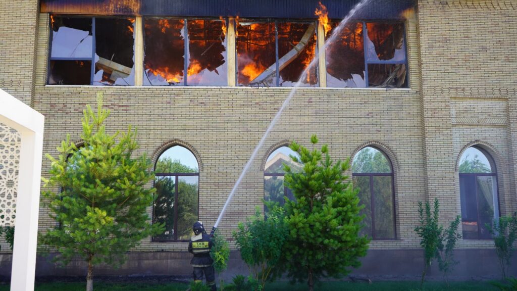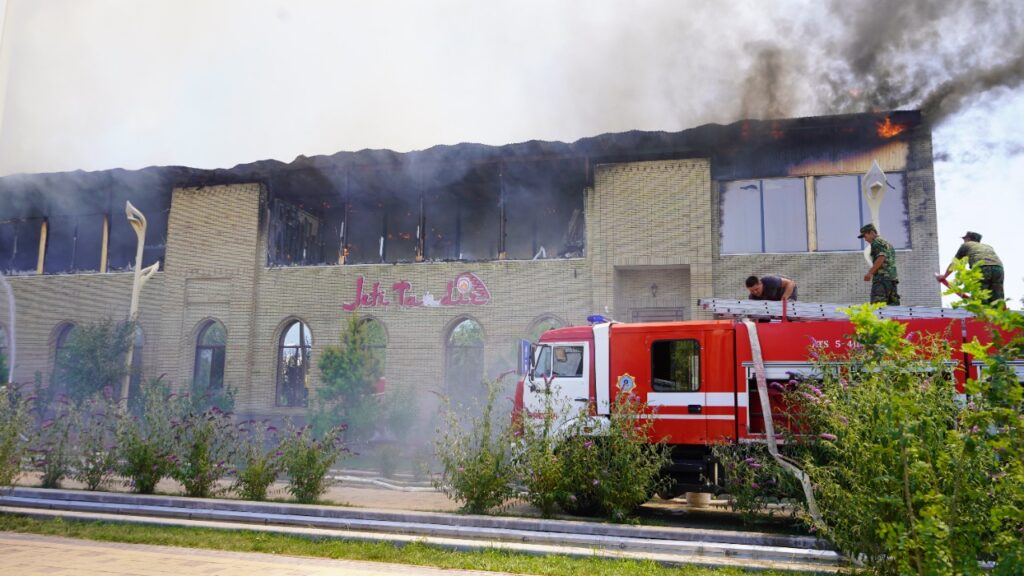 Бүгін Түркістан қаласындағы «Әзірет-Сұлтан» қорық-музейінің қорғау аймағының сыртында орналасқан екіқабатты «Жеті Таңдыр» дәмханасының екінші қабатында сағат 11:48-де өрт шықты. Аумағы 400 шаршы метр болатын дәмхананың шатырын өрт шарпыды. Сағат 12:50-де өрт сөндірілді.