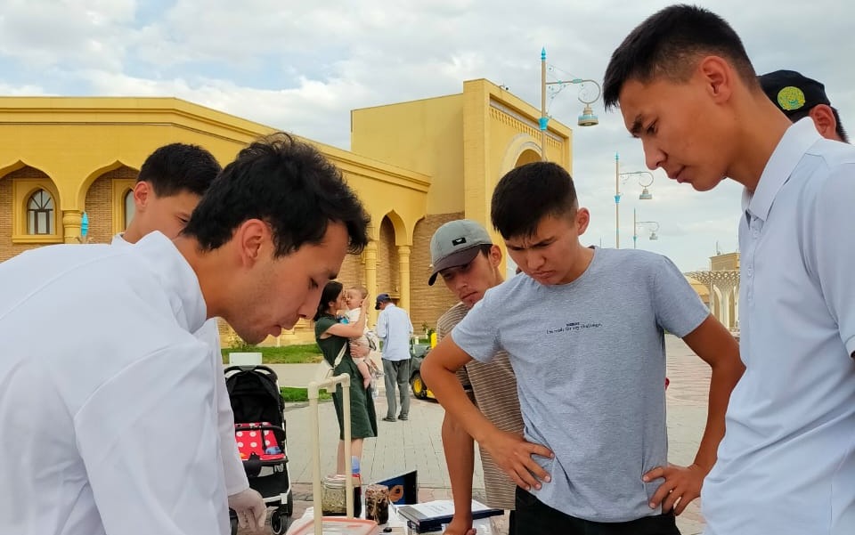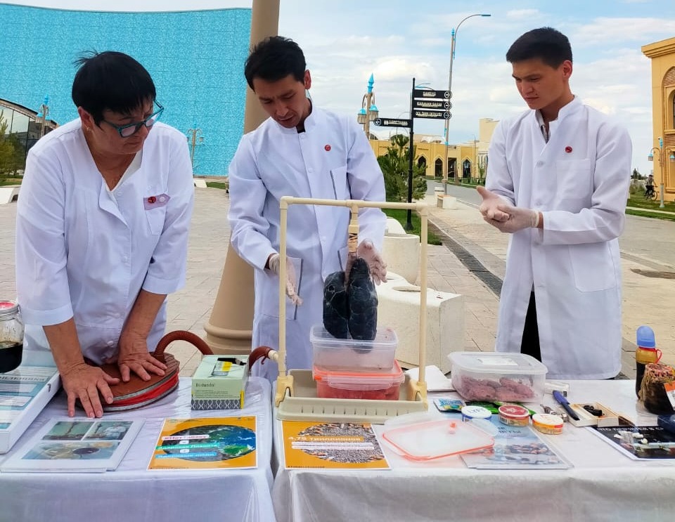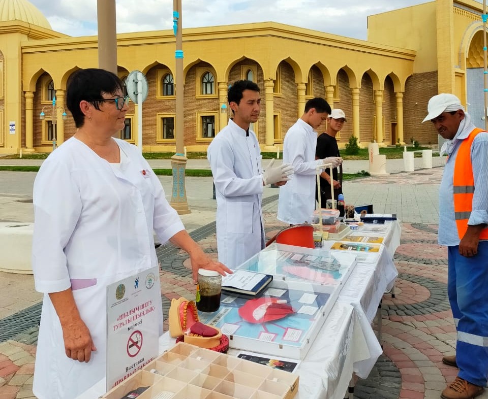 Көрменің ұйымдастырылуына ат салысқан, Қожа Ахмет Ясауи атындағы Халықаралық қазақ-түрік университетінің медицина факультетінің студенттері Смайыл Қосдәулет пен Туремурат Акберген тұрғындарымызға шылым шегудің соңы жақсылыққа апармайтынын, қауіпті ауруларды алып келетінін, жастар арасында қазіргі кезде кеңінен қолданылып жүрген кальянның жұқпалы ауруларды туғызатынын сөз етіп, олардың ішіндегі улы элементтерді көрсетті. Сондай-ақ темекі шегетін адамның тілі «шашты» болып келеді, ал ол бактериялардың қоныстануына себепкер екендігін еске салып, жастарды шылым шегуден ұзақ тұруға шақырды.