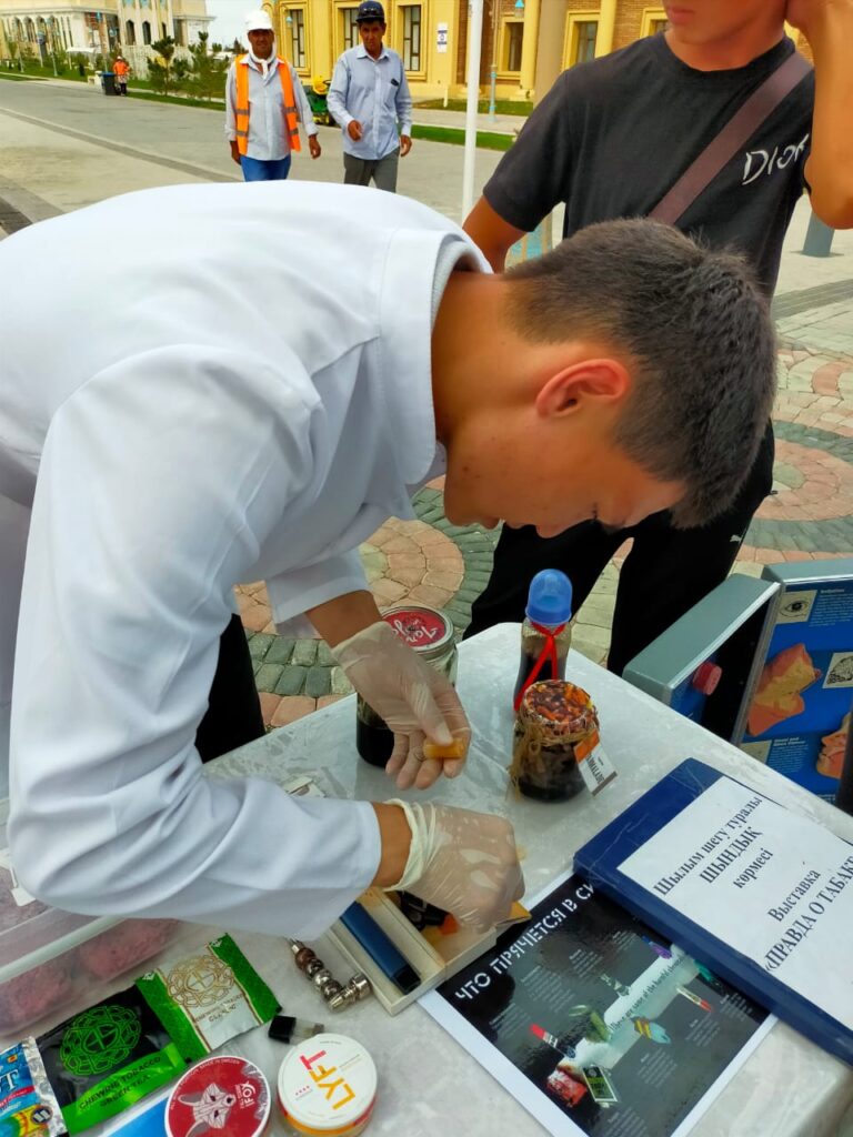 Іс шара Дүниежүзілік темекіден бас тарту күніне орай ұйыдастырылып, еліміздің бірқатар қалаларында жалғасын тауып, бүгінде Түркістанға келіп жетті. Тұрғындармен қала қонақтары көрме барысында темекі өнімдерінің ( GLO, IQOS, вейптердің) адам организміне, қоршаған ортамызға қаншалықты қауіпті екенділігі жақыннан таныстырылды.