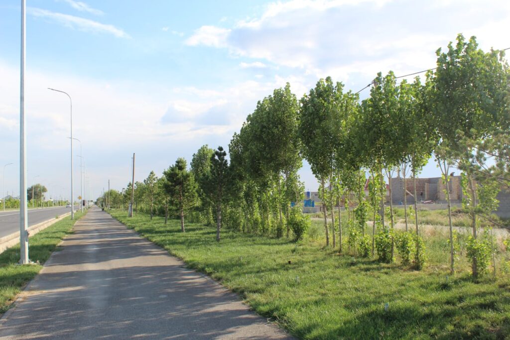 Б. Саттарханов пен Алматы көшелері аралығында секторлар бойынша бекітілген көшелерде ағаш саны: 107 389 дана көгал көлемі: 126 580 ш.м егілді және көгалдандыру жұмыстары жалғасуда