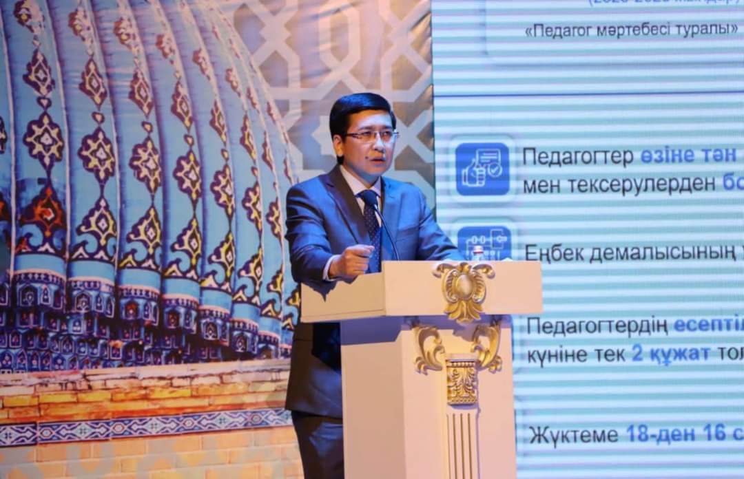 Министрдің мәліметінше, бүгінде ел көлемінде 3,6 млн бала 7500 мектептерде білім алып жатыр. Мектептердің саны бойынша да елімізде алғашқы орында тұрған біздің облыс екен. «Облыстың 10-нан аса мектептерін аралап шықтым. Жақсы да мектептер бар, проблемалар да жеткілікті. Жасыратыны жоқ, бұған дейін мектепке кездейсоқ жандар келетін. Алдыңғы жылдары мұғалімдік мамандыққа тапсыратын талапкер 50 балл көрсеткішпен түсетін. (Қарап отырсақ, ең білімсіз талапкерлерді мұғалімдік мамандыққа қабылдап келген екенбіз ғой). Біз 75 баллдан төмен жинаған талапкерді қабылдамау туралы ереже бекіттік. Қазір орташа балл 100, шектік балл – 75 болды. Меніңше, қазіргі 1-2 курста оқып жүрген студенттер бітіріп шыққанда, мектепке білімді кадрлар келеді деп ойлаймын. Екінші мәселе, мектептердегі қағазбастылықты жойдық. Бүгінде, мен қол бұйрық бойынша мұғалім екі-ақ құжатты толтырады: 1. Kundelik.kz электронды журналын жүргізеді; 2. Өзінің сабақ жоспары. Бітті басқа құжатқа ұстаз бас ауыртпайды, тек қана сабағына дайындалып, балаға сапалы білім берумен айналысуы керек. Бұйрықты бұзған басшыны жауапкершілікке тартамыз. Алдыңғы жылы 700-ге жуық басшыны осы бұйрықты бұзғаны үшін жауапкершілікке тарттық. Бізде педагогикалық мамандықтар бойынша үлкен проблема болды. Республика бойынша 86 университет педагог кадрларын даярлап келді. Саны бар сапасы жоқ ЖОО-лар көп болды. Алдыңғы жылы біз педагогикалық мамандықты бітірген түлектер үшін арнайы емтихан-тест енгіздік. Бітірген мамандығы бойынша мектеп бағдарламасы деңгейінде құрылған тест тапсырттық. Сол тестті бітірушілердің 6%-ы ғана тапсырып шықты. Осы тест нәтижесінен-ақ елде сапасыз ЖОО-лар қаптап кеткеніне көз жеткізуге болады. Мониторинг жүргізіп түлектері тесттен өте алмаған 36 ЖОО-ның лицензиясын кері қайтардық. Енді бұдан былай кез келген, кездейсоқ адам мектепке кіре алмайды. «Педагог мәртебесі туралы» заң қабылданып, қоғамда мұғалім мәртебесі айқындалды. Бұрын мұғалімдер тікелей міндетіне кірмейтін функцияларды атқаратын. Пайдасыз түрлі іс-шараларға қатысып, көше аралап, қоғам жұмысына ретсіз жегілетін. Қазір жағдай өзгерді, себебі педагогтар заң бұзылған жағдайда құқықтары қорғалатынын біледі».