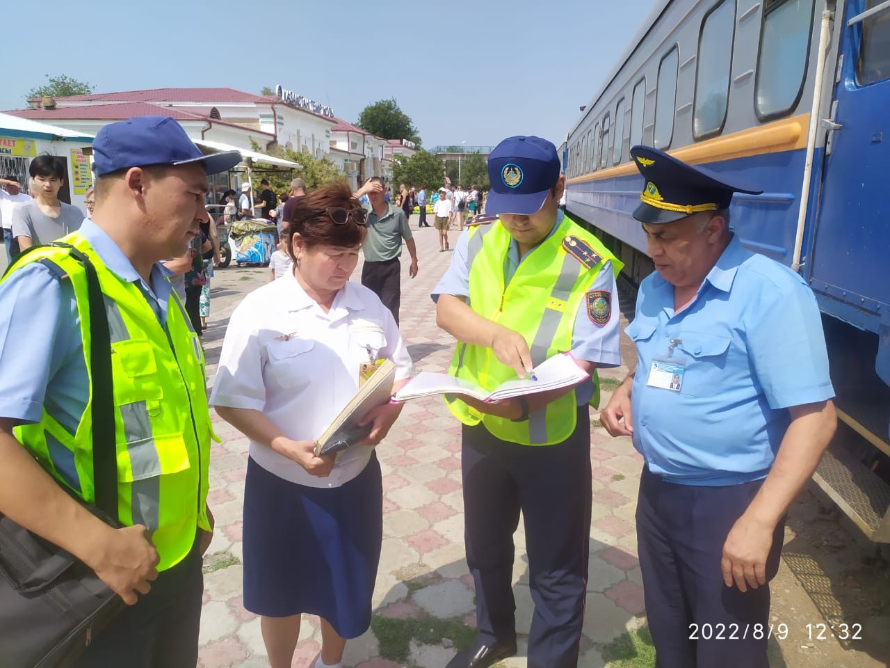 Құқықбұзушылықтарды ескерту, қоғамдық орындарда тиісті қоғамдық тәртіпті сақтау мақсатында Түркістан станциясындағы Желілік полиция бөлімінің ұйымдастыруымен 8-12 тамыз аралығында «Көліктегі қауіпсіздік» акциясы өтуде. Акция барысында қауіпті аймақта жазатайым оқиғалардың алдын алу мақсатында тұрғындарға шойынжолдан өту қағидалары түсіндірілуде.