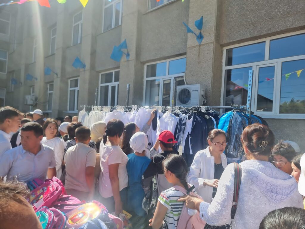 Жәрмеңке тауарларын нарықтағы бағадан 10-15 пайызға арзан бағада мектеп формаларын балаларымызға жүрегі кең кәсіпкерлер алып берді .Сонымен қатар аудан әкімі Рысбеков Ғани Құрмашұлыда аталып өткен іс-шараға арнайы келіп, балалардың қуанышымен бөлісіп, жаңа оқу жылына сәттілік тілеп қайтты.