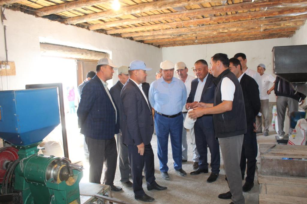 Мұнан соң олар аталған елді мекендегі «Батырбек» тары өнідіру цехына барды. 2016 жылы өз жұмысын бастаған цех жылына 2,5 тонна тары өндіруде. Цех иесі, кәсіпкер С.Батырбеков жергілікті 2 тұрғынды жұмыспен қамтып отыр. Қос нысанның жұмыс барысымен танысқан Қ.Бегалыұлы кәсіпкерлерге көрсетілетін қолдауларды тиімді пайдалану қажеттігін және мәселелері болса жазбаша негізде жолдауларын айтты. Одан соң Маяқұм ауылының Ардагерлер саябағында жергілікті тұрғындармен кездесу өтті. Онда азаматтар зейнет жасын қысқарту, аурухана тапшылығы, жол сапасына қатысты мәселелерді назарға алуын сұрады. Маяқұмдық ақсақал И.Алдияров: