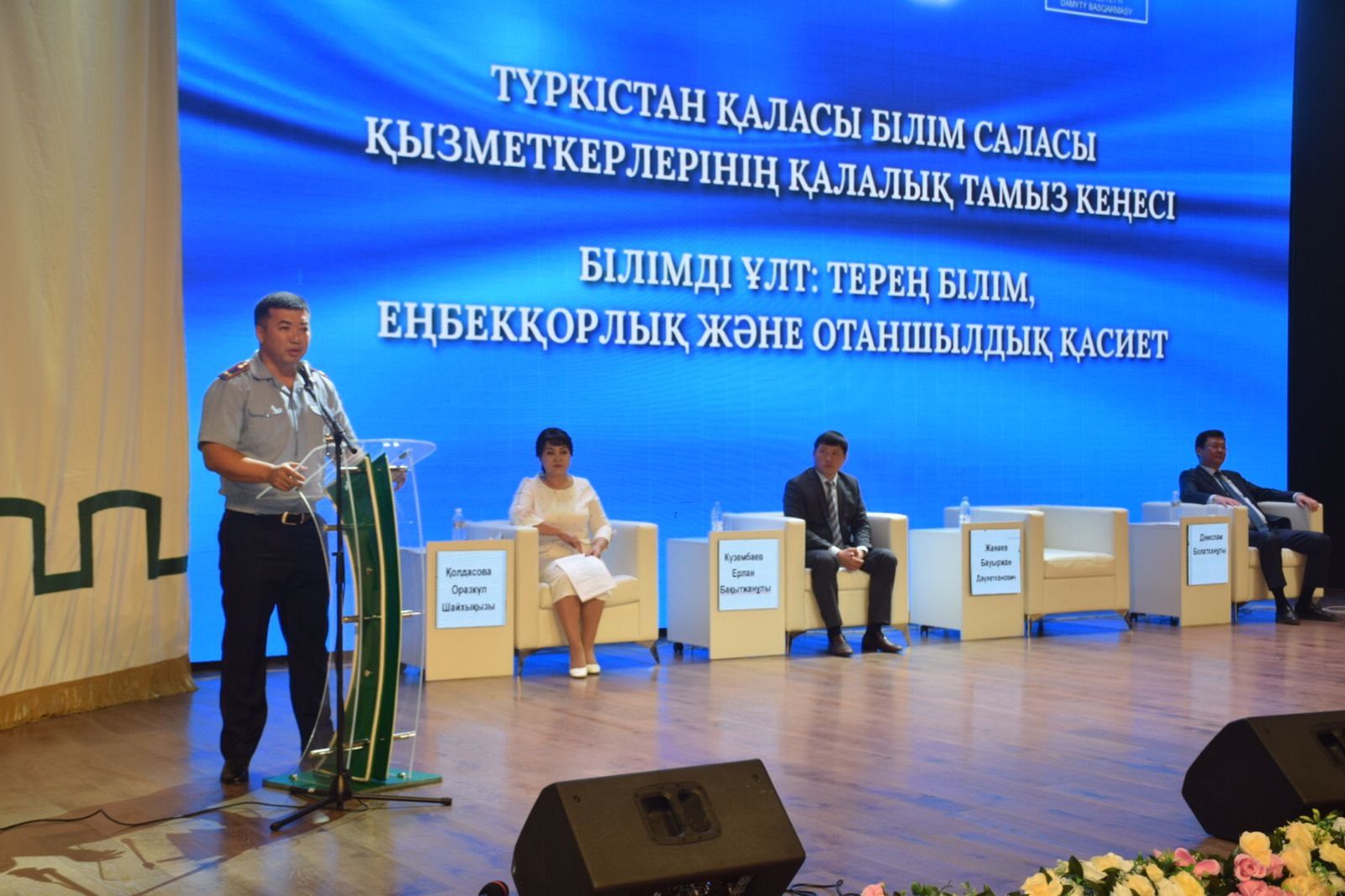 Бүгін Түркістан Оқушылар сарайында білім қызметкерлерінің Тамыз педагогикалық кеңесі болып өтті. Шара барысында Түркістан қаласы әкімдігінің адами әлеуетті дамыту бөлімінің 2021-2022 оқу жылында атқарылған жұмыстары туралы бейнеролик көрсетілді. Жиынға Түркістан облысы адами әлеуетті дамыту басқармасының басшысы Дінислам Болатханұлы, Түркістан қаласының әкімінің орынбасары Ерлан Күзенбаев, Түркістан қаласы адами әлеуетті дамыту бөлімінің басшысы Қолдасова Оразкүл Шайхықызы қатысты. Сонымен қатар, конференцияға құқық қорғау органдарының өкілдері, мектеп директорлары, бөлім басшылары, мәслихат депутаттары, ұстаздар мен зиялы қауым өкілдері қатысты.