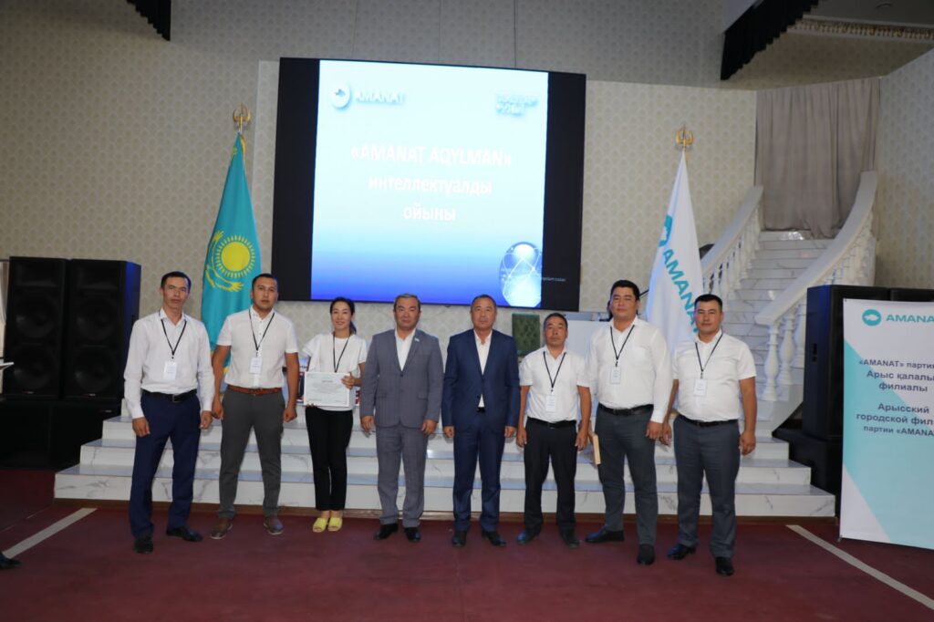 «AMANAT AQYLMEN» интеллектуалды ойынында алға озған 3 жеңімпаз анықталды. 3-орынды қалалық әкімдіктің мамандарынан құралған «Ел тірегі» командасы иеленсе, 2-орыннан құрамында партия қызметкерлері және депутаттары бар «Парасат» тобы көрінді. Қалалық «Жастар ресурстық орталығының» ұжымынан құралған «Болашақ» командасы 1-орынды қанжылап, жеңімпаз атанды. Жүлдегерлер қаржылай және арнайы сыйлықтармен марапатталып, Арыс қаласының әкімінің алғыс хаты табысталды.