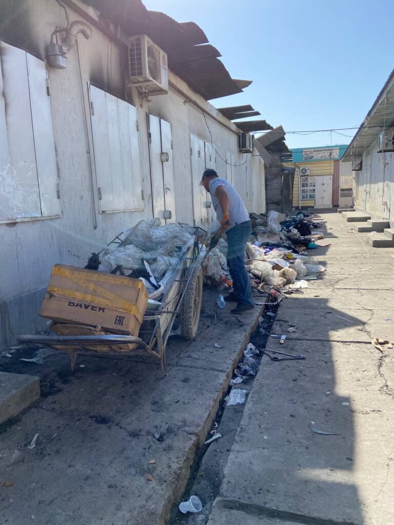 Жетісайда базарды қайта қалпына келтіру жұмыстары қарқынды жүріп жатыр. Жетісайда күн батқанына қарамастан, базар аумағында өрт қалдықтарын тазалау жұмыстары жалғасуда. Жұмыс барысын тексеруге облыс әкімінің бірінші орынбасары Арман Жетпісбаев келді. Қызыл жалыннан зақым келген 900 шаршы метр жерді жылдам реттеу үшін 6 секторға бөлінді.