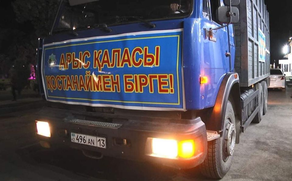 Жұдырықтай жұмылған Арыс халқы бір күнде 3 тонна ұн, 100 адамға лайықталған төсек жабдықтары (жастық, жамылғы, төсеніштер), 1 тонна макарон, 500 литрге жуық өсімдік майы, 10 тонна ауыз су, 1 тонна картоп және 1 тонна сәбіз, 3 тонна пияз, 1 ауыр жүк көлік қауын, жарты тонна орамжапырақ секілді тез бұзылмайтын азық-түлік өнімдері, гигиена құралдары және бірінші кезектегі қажетті заттарды Қостанай облысына жөнелтті. 2019 жылы Арыс қаласында болған техногендік сипаттағы төтенше жағдайда қаланы қалпына келтіруде қол ұшын созған қостанайлық ағайынның игі ісін арыстықтар ұмытпайды! Арыстық тұрғындар, меценаттар, қоғам белсенділерінің бұл бағыттағы игі ісі әлі де өз жалғасын табатын болады.
