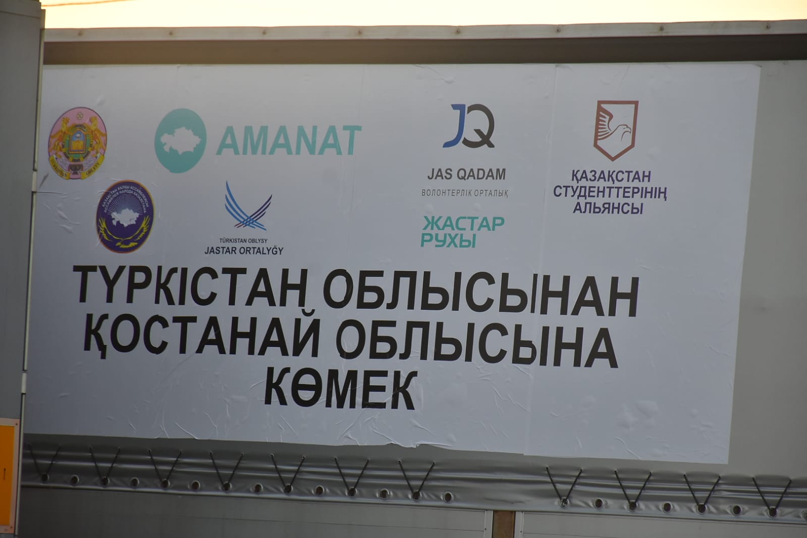 Түркістан облысы әкімдігінің қолдауымен және «AMANAT» партиясы Түркістан өңірлік филиалының ұйымдастыруымен Қостанайда орын алған апатты жағдайға байланысты гуманитарлық көмек жіберілді. Атап айтсақ, Мақтаарал ауданы, Арыс және Түркістан қалаларында орналасқан қабылдау пункттерінде 72 тоннадан астам азық-түлік өнімдері мен ауыз су, жеке гигиеналық заттар мен төсек жабдықтары жиналған болатын. Облыстық партия филиалының Атқарушы хатшысы Бейсен Тәжібаевтың айтуынша, бүгін жолға шыққан жүк көліктері Қостанайдағы қиындыққа душар болған жандарға жәрдемдесуге үлес қоспақ. Сондай-ақ, бірлік пен берекені ту еткен түркістандық жұртшылықтың қостанайлықтарға алғашқылардың бірі боп көмек қолын созғанына құрметпен қарайтынын жеткізді.