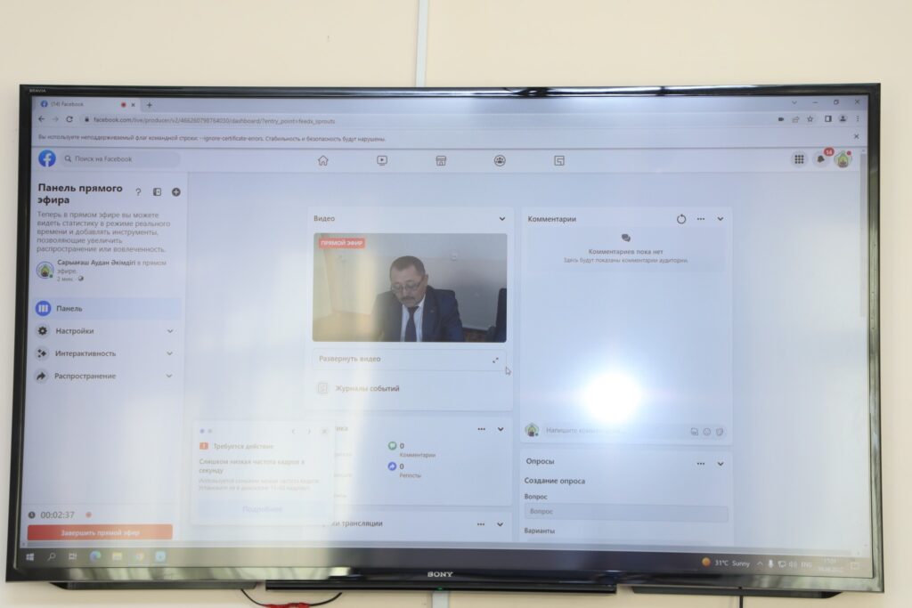 Сарығаш ауданында 80-нен астам көрермен қатысқан онлайн режимде жәрмеңке болып өтті. Тікелей эфирде өткізілген жәрмеңке Мемлекеттік қызмет істері агенттігінің Түркістан облысы бойынша департаментінің бастауымен өткізілді. Жәрмеңке барысында азаматтар мемлекеттік қызмет алу мәселелері бойынша қажетті консультативтік-әдістемелік көмектер алды.