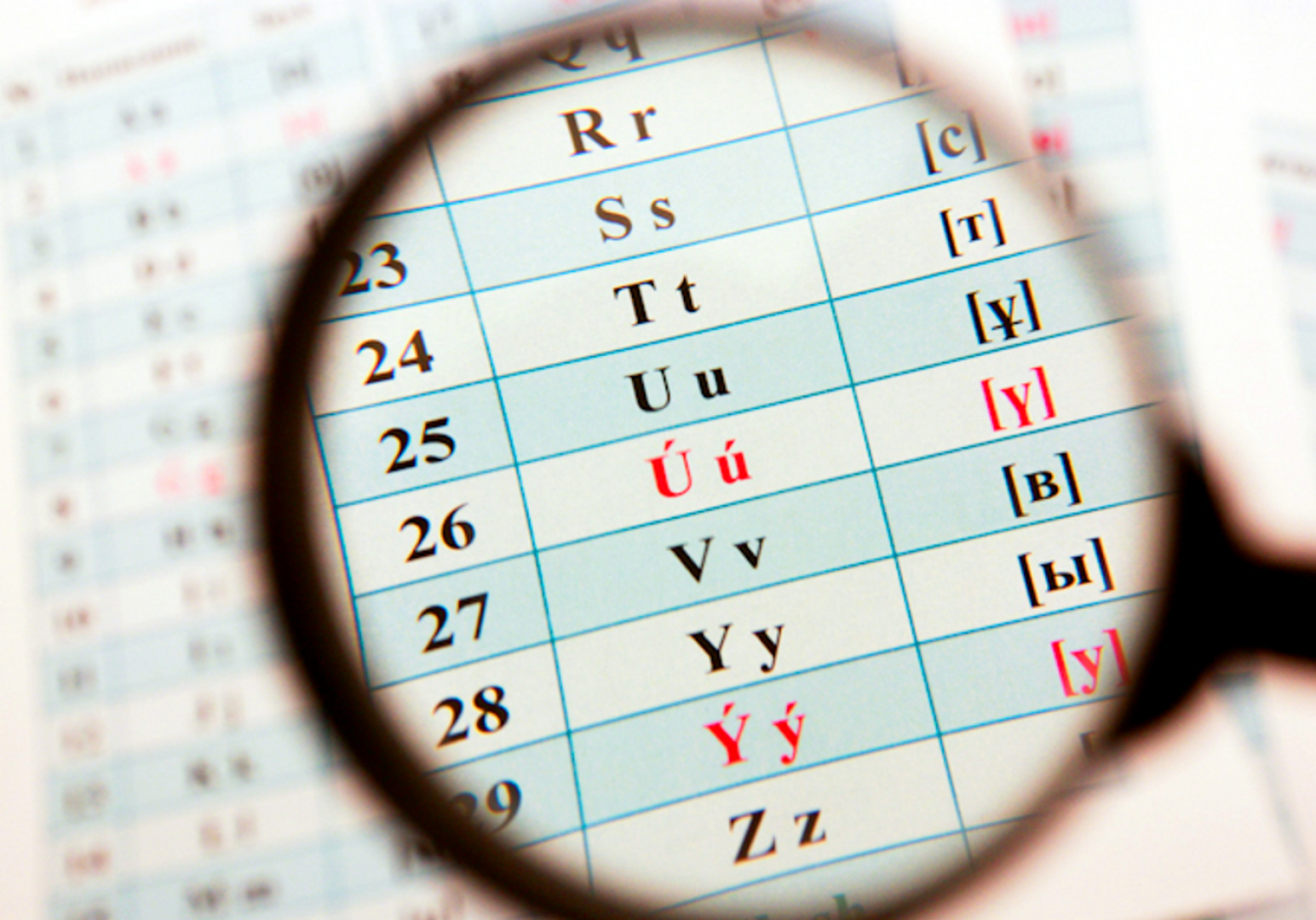 | Дауысты дыбыстар: | · дауыстыларды таңбалайтын әріптің аты дыбыстық ортаға неғұрлым тәуелсіз болып саналатын ашық буындағыдай дыбысталады: А (а-pa), Ä (ä-ke), E (e-ne), I (ı-nı), O (o-tan), Ö (ö-ner), Ū (ū-lan), Ü (ü-mıt), Y (y-dys); |