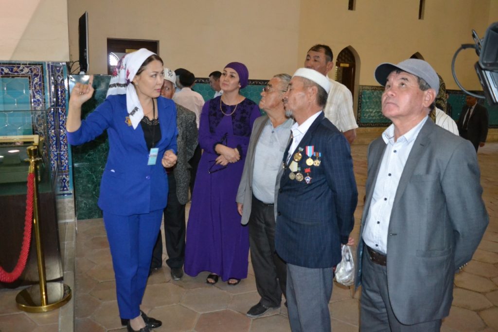 Кесенеге кірген зейнеткерлер алдымен қасиетті топырақта жатқан қазақтың хандары мен би, болыстарына арнайы Құран бағыштады. Содан соң құйылғанына 620 жыл толған көне жәдігер Тайқазанның шығу тарихымен танысып, өткен ғасырдан сыр шертетін зәулім ғимараттың бөлмелеріне зер салды. Қызылорда облыстық ардагерлер кеңесінің төрағасы Серік Дүйсенбаев тарихи саяхатты ұйымдастырушыларға және Түркістанның түлеуіне үлес қосып жатқан жандарға алғысын білдірді.
