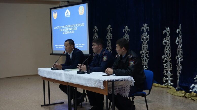 Полиция қызметкерлері жасөспірімдер арасындағы құқықбұзушылық жайында және бөтеннің мүлкін ұрлау, қарақшылық, алаяқтық туралы баяндап, одан сақ болудың жолдарын түсіндірді. Сонымен қатар бүгінгі таңда оқу орындарында да, қоғамдық орындар да және сауда-саттық орындарында да бейнебақылау камералары бар екендігін ескертіп, қылмысқа барудың соңы жақсылыққа алып келмейтіндігін нақты мысалдар келтіре отырып жеткізді.