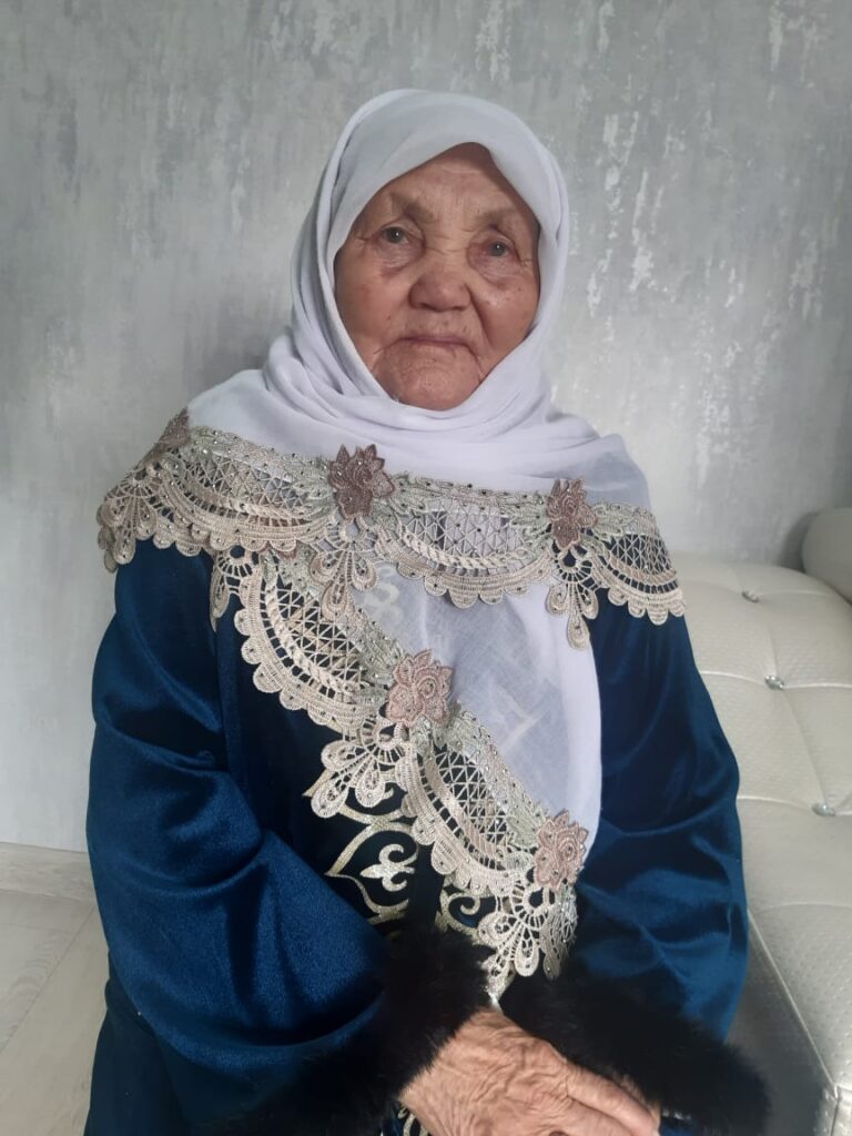 Мен сол кезде бір жаста екенмін. Анамыз үш баласын бағып, тылда жұмыс істеді. Егін егіп,малға қарап, қолғап, шұлық тоқып, әскерге жіберіп отырыпты. Сәбилік өмірім қиын қыстау кезінде өтті.
