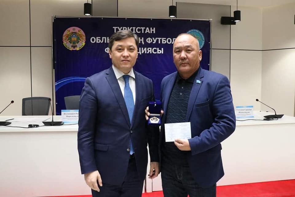 Облыстық футбол федерациясының конфедерациясында Түркістан облысының футбол саласының өсіп-өркендеуіне ұзақ жылдардан бері мол еңбек сіңіріп келе жатқан азаматтар «Қазақстан футбол федерациясына – 30 жыл» төсбелгісімен марапатталды.