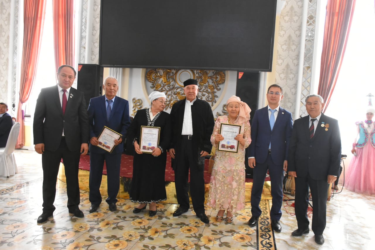 Шара басында қала әкімі Рашид Аюпов, қалалық мәслихаттың хатшысы Ғ.Сәрсенбаев қарттарға жылы лебіздерін білдіріп, бір топ қарияға алғыс хаттар табыстады. Сонымен қатар, облыстық ардагерлер ұйымының төрағасы Ж.Мәуленқұлов сөз сөйлеп, қаланың дамуына сүбелі үлес қосқан аналарымызға М.Ибрагимова мен Р.Шарафиеваға «Аялы әже» төс белгілерін табыстаса, қаламыздың Құрметті азаматы, еңбек ардагері Кеңесбек Бөкебаевтың иығына шапан жапты. Шара барысында қалалық мәдениет үйінің өнерпаздары әннен шашу шашып, қазыналы қарттарымызға мерекелік кеш сыйлады.