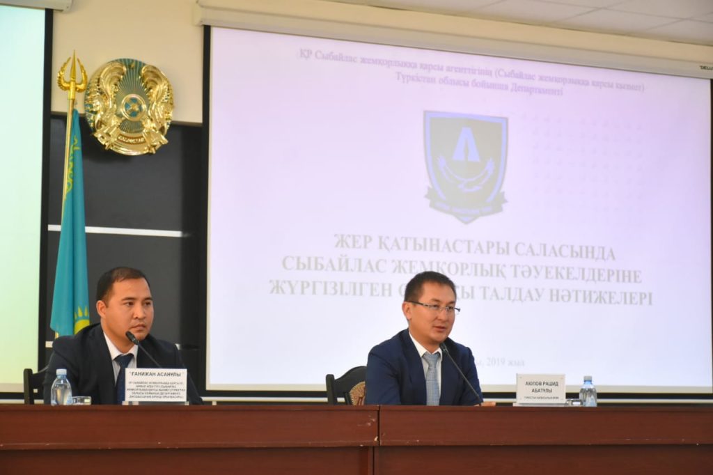 ҚР Сыбайлас жемқорлыққа қарсы іс-қимыл агенттігінің Түркістан облысы бойынша департаменті қалалық «Жер қатынастары» бөлімінің 2018 жыл мен биылғы жылдың 8 айындағы жұмысын саралап, қызметтік талаптардың орындалмау барысын талдады. Жиынға қала әкімі Рашид Аюпов, қала, аудан әкімдерінің жер саласына жауапты орынбасарлары, жер қатынастары мен жер кадастры бөлімдерінің басшылары, БАҚ өкілдері қатысты.