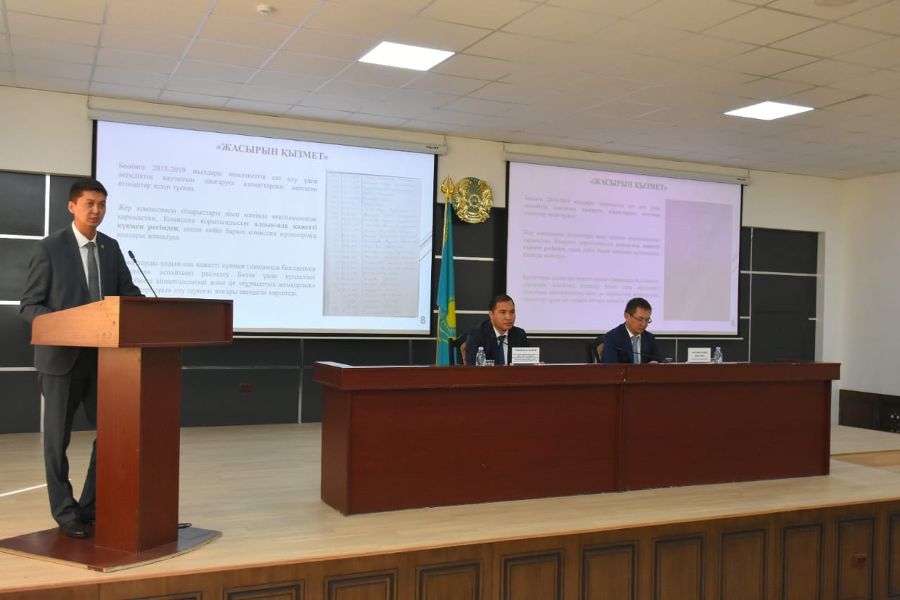 Агенттік департаменті басшысының бірінші орынбасары Ғанижан Асанұлы: «Жер сіздің немесе біздің жеке меншігіміз емес халықтікі. Барлығымыз мемлекеттің қызметшісі екенімізді естен шығармауға тиіспіз. Бұл біздің ұсыныс та, талабымыз да емес, тек заңда көрсетілген заңнамалар орындалу шарт» – деді. Отырыс соңында түсіндіру жұмыстары үшін бейнеролик дайындау арқылы әкімдік табалдырығын тоздыратын адамдар саны сәйкесінше азаятындығы ескеріліп, облыс орталығы тұрғындарының құқықтық сауаттылығын арттыру кажеттілігі қолға алыну керектігі ұсынылды.